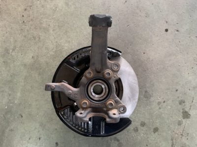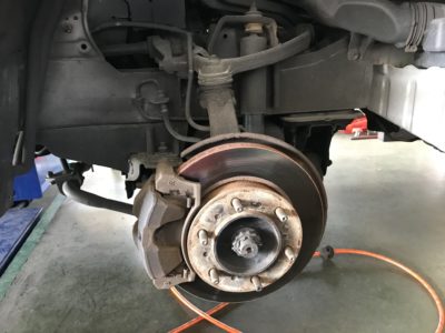 ディスクローター研磨、ディスクパットなど交換する為ナックルを外します。